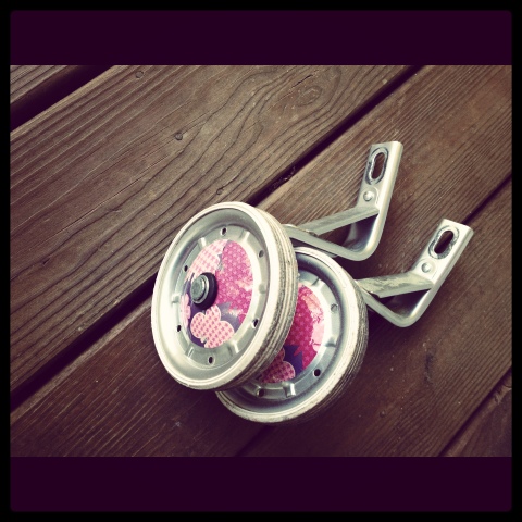 We took them off once before. And we gave it a good shot. She just wasn’t ready. So we put them back on and we figured they would come off again when it was time . Predictably, “ready” came as soon as Kellan, her buddy across the street, took off his training wheels and rode across his yard.