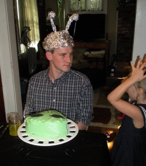 Last year we made a tin foil hat for MQD’s Alien Birthday.