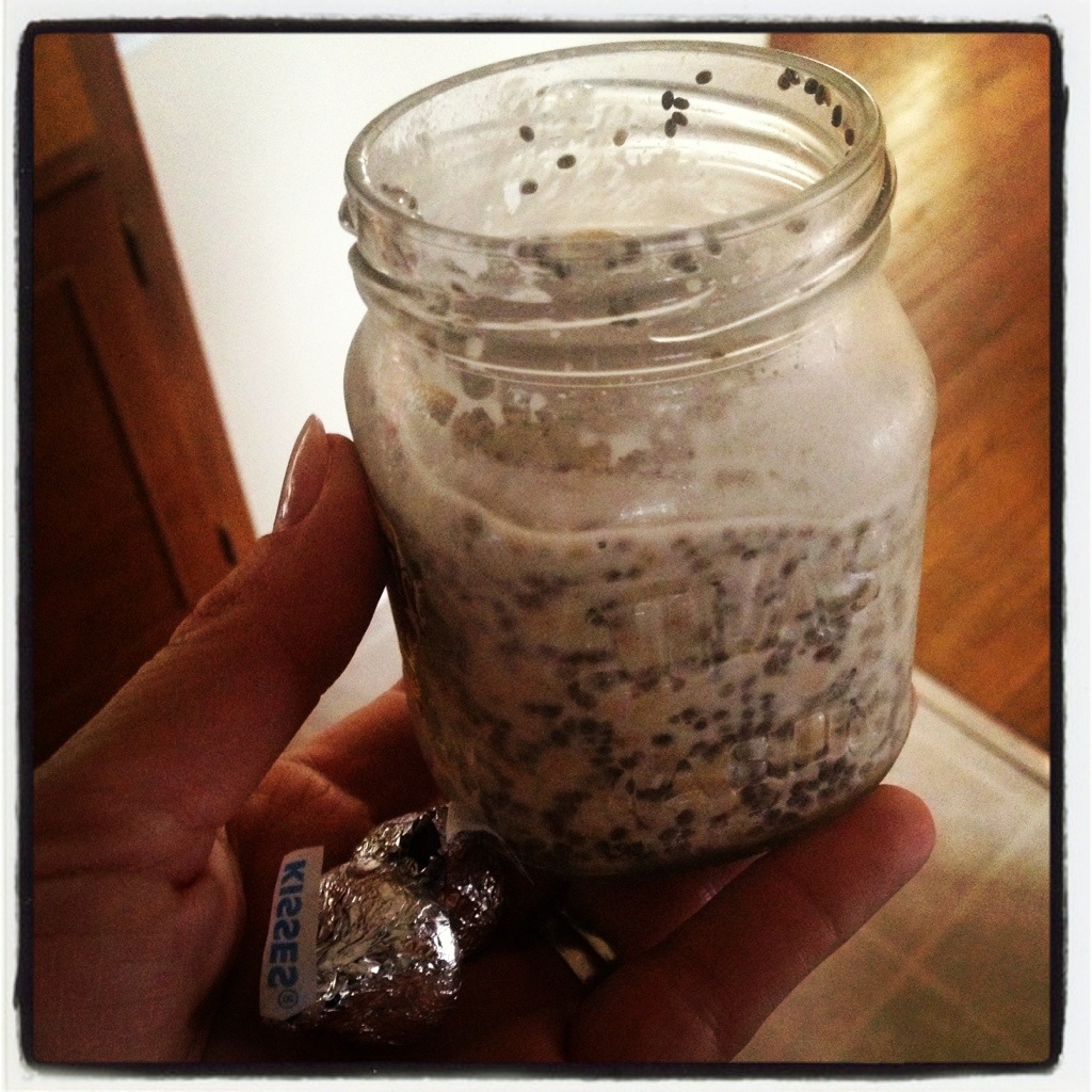 I am left feeling like I need to do all the other things I told myself I would do today instead.  So, I ate breakfast.  But only because I prepared it last night.  Overnight oatmeal with homemade almond milk and chia seeds. And two Hershey’s kisses, but who is counting?