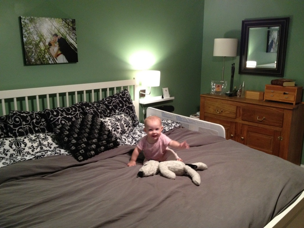 MQD made a pile of things for the thrift store. It was in the corner of our bedroom. (Since this girl’s husband was very tolerant of her big, fat whiney freakout this morning I will not make any comment about how long it might have stayed there had I not put it in a bag.) When the chips are down I clean. I put the duvet cover in the washing machine and stripped the sheets. When you sleep with a dog and a baby a totally clean bed deserves a totally clean bedroom so you can slip between your cold sheets and feel like you are in a hotel once a week. So, the sheets were nearly done, I had to get rid of the pile of stuff.