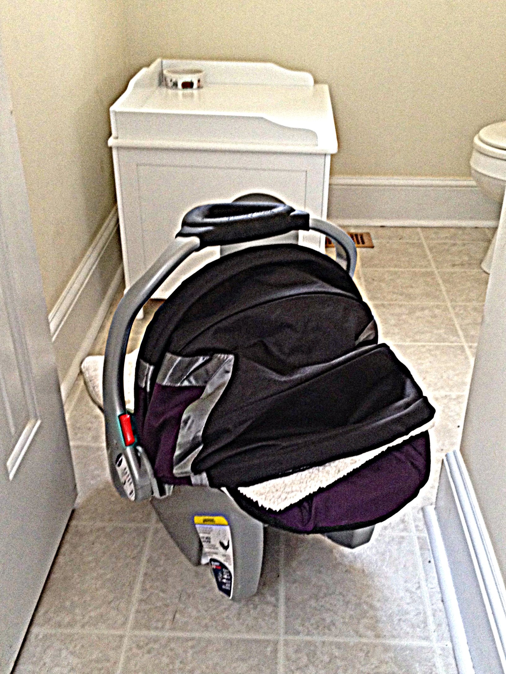 As much as  I wanted to pull her out of her seat and wrap her little arms around my neck, squeeze her and tell her that I love her with everything I am…. I put away the groceries, cleaned all three bathrooms and folded two loads of laundry before she woke up.   Oh, and emptied the litter box.  Since my sweet girl was gonna nap in the guest bath room.