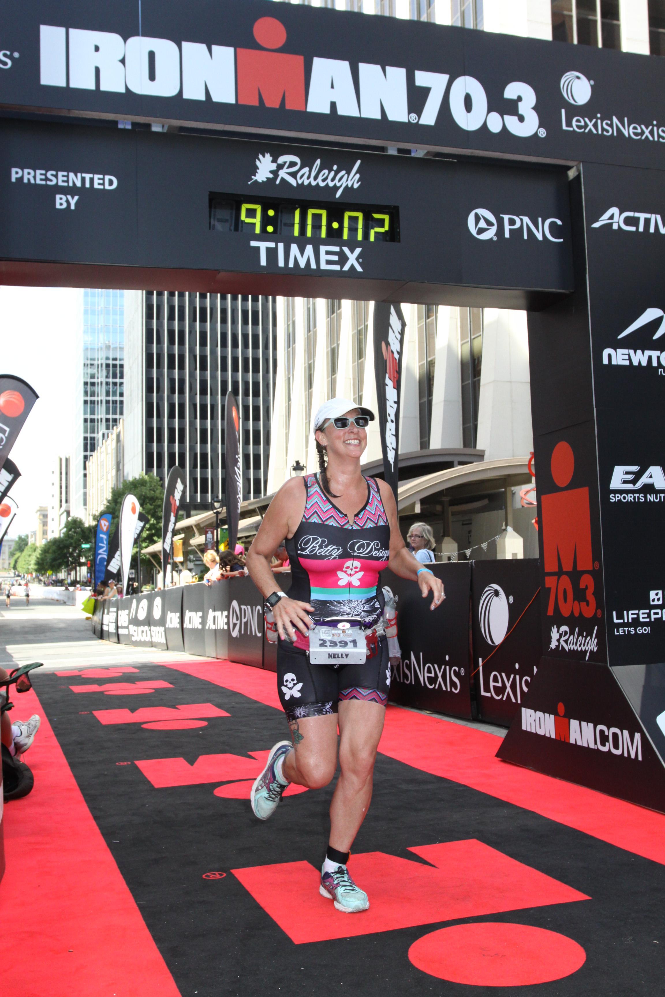 I was prepared for the last third of the ride mentally. I knew that as we neared downtown Raleigh the roads would change and I would need to be more mindful of other riders. I was not prepared to stop while going uphill FOR A TRAIN! I had some laughs with the group of folks that were hanging out at the train tracks. I said “This is the Half IronMan version of a fishing story. I would have WON my age group but we waited at those train tracks for almost an HOUR!” It was nice to have some laughs before we hit the stretch of the ride I had been fearing.