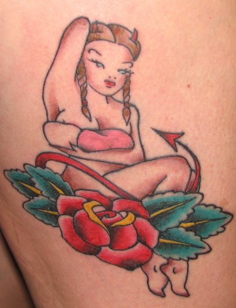 As my hell-raising and breastfeeding days were behind me and my life settled into that of a newly single mother my boobs took a little hiatus. I celebrated them both (both boobs as well as the hell-raising and the baby feeding) with this tattoo!