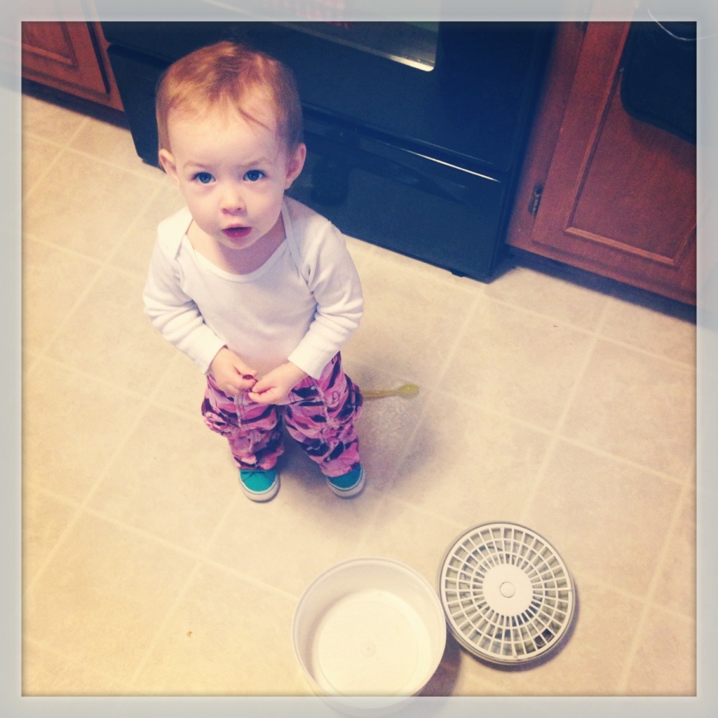 Kicked it in the kitchen with the salad spinner for a bit.  (Side note: A salad spinner is an excellent baby gift!! Better than you think. It has provided hours of fun.)