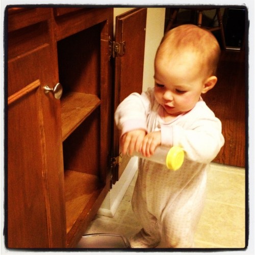 I took Lucy in for her 12 month well visit. Two months late. She is a-ok. She is long and lean with a freakishly large noggin.
