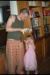 “When are you not just hanging around like a pretty princess?” I had mentioned wearing my wedding dress all day for our anniversary but evidently he didn’t think I would bother. He got out of his car and we met him on the porch as we often do, only I was a wee bit more glam than normal. I opted to switch up my greeting from my typical still sweaty in gym clothes “Dinner is almost ready, I am taking a shower” and went with a “You have ten minutes to change your clothes, kids are having dinner across the street. We are going out for a drink, home to eat cupcakes and we can have sushi after the kids go to bed?”